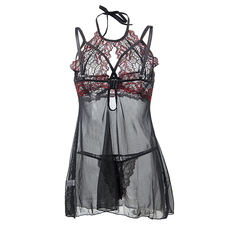 Comeondear Сексуальные костюмы для женщин Черная Кружевная комбинация размера плюс Холтер прозрачное Сетчатое белье порно сексуальный нижнее белье RA80843 детали: