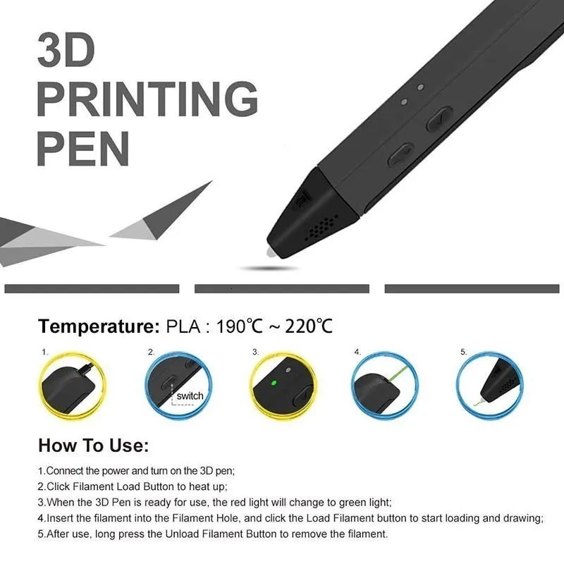 Основные параметры аксессуары упаковка послепродажное обслуживание Модель №.:SL-600: 36 г Размер: 162(L)× 16(W)× 19(H) мм Цвет: красный, черный, синий, коричневый, белый, зеленый Применимые материалы: PLA/ABS крафт 1,75 ± 0,02 мм оптимальной температуры. : PLA 170 ℃ PCL 55 ℃ Мощность ток на входе: DC5 ± 0,25 V 2A 10 Вт вход адаптера: AC100V ~ 240V 50/60HZ 0.35A 1 ручка 1 кабель для передачи данных-1 шт. руководство-1 шт. нить 2 пальца кепки коробка Размеры: 182*65*25 мм Вес брутто/Вес коробки: 0,15 кг коробку Размеры: 388*365*270 мм Кол-во/кор: 100 шт г. В/кор: 16 кг Гарантия: один год после даты доставки, Повреждения, вызванные использованием нити с неоригинальным брендом или не строго следуя руководству пользователя, аннулируют гарантию. Характеристики интеллектуального 3D пера SL-600: 1. Поддержка PLA & PCL, нормальные/низкие 2 модели температуры свободно меняются. 2. Самая низкая температура. Безопаснее, чтобы избежать ожога 3. Микро-usb питается от внешнего аккумулятора или любого интерфейса питания Android. 4. Неблокированное и заменяемое Патентное сопло, легко поддерживать 5. Модный и тонкий дизайн