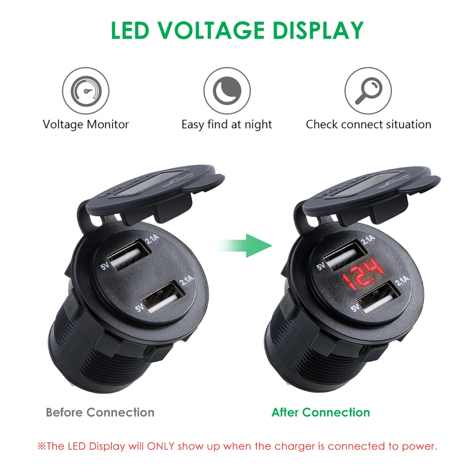 2.1A с вольтметром и проводом в линии двойной USB разъем зарядного устройства водонепроницаемая розетка 10А предохранитель для 12-24 В автомобиля лодки мотоцикла