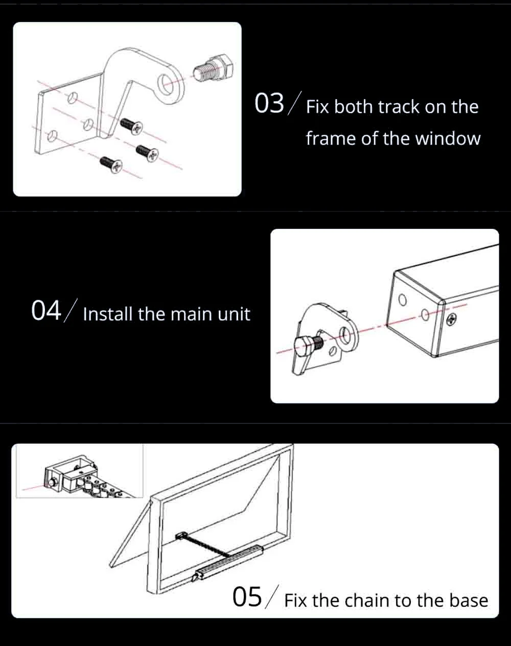 BKS-01 маленький цепной привод может быть применен к различным окнам. Установка BKS-01 является гибкой, может быть установлена с или без подоконника.