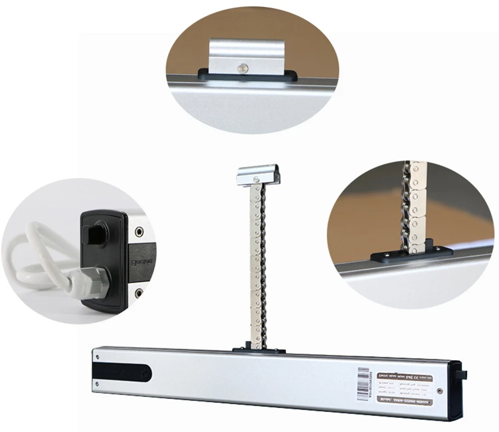 Электронный цепной двигатель широко используется для моторизованных скользящих лент, створки и окна skylight и т. Д., особенно для высокого места, которое трудно управлять вручную, работает со всеми видами дистанционного управления и реализует автоматизацию.