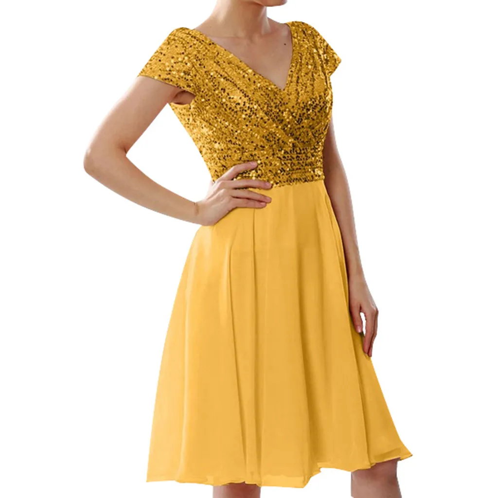 Женское элегантное платье с блестками, с коротким рукавом и глубоким v-образным вырезом, 2019