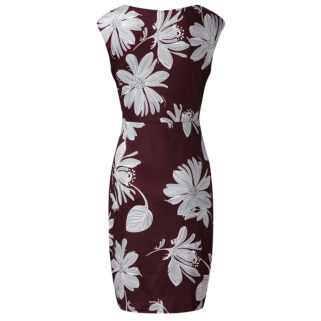 Женская Летняя мода печати v-образным вырезом без рукавов ремень Повседневное платье