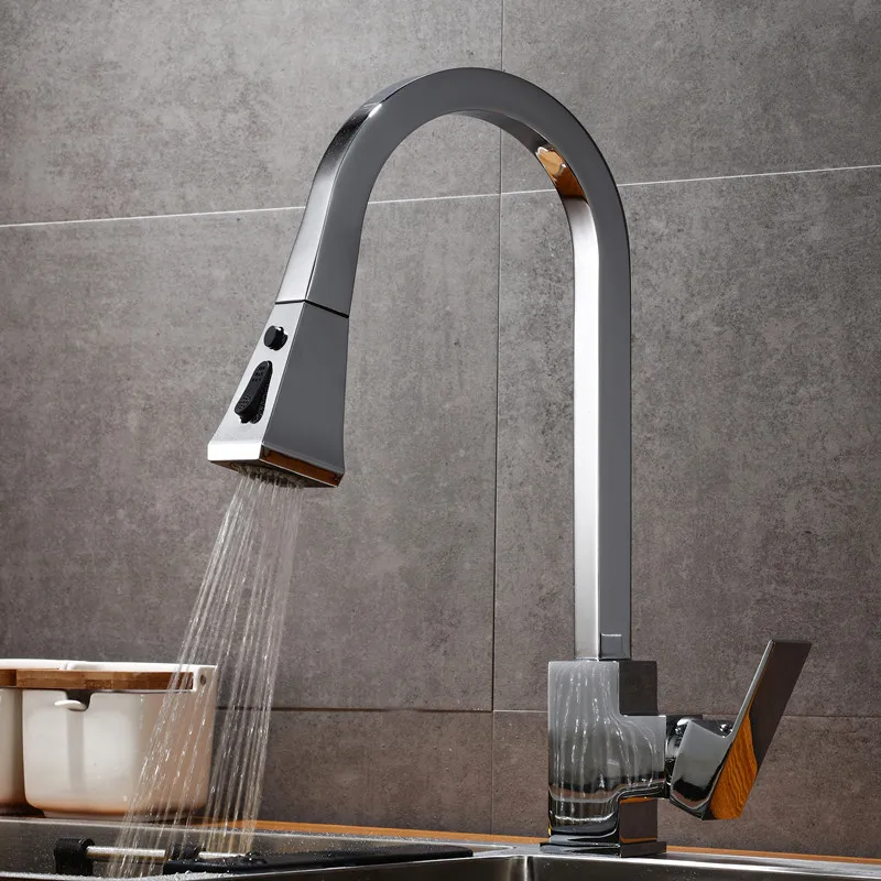 Описание товара: Функция: кухонная раковина выдвижной кран Соответствует стандарту качества ISO9001 во время производства Керамический дисковый картридж для плавного и длительного использования Прост в установке С поворотным носиком подходит для двух раковин В комплекте с шлангами и аксессуарами для горячей и холодной воды