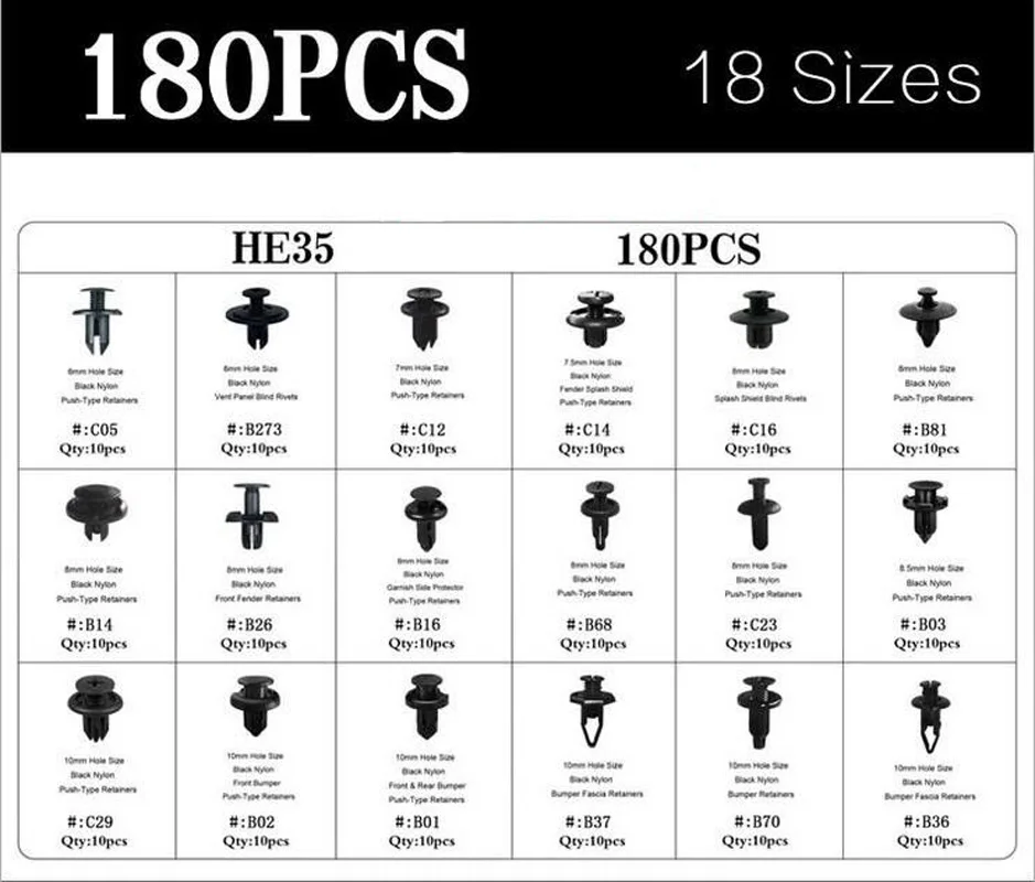 * 180 шт 18 размеров автомобильные заклепки Ассортимент Набор для Honda Toyota