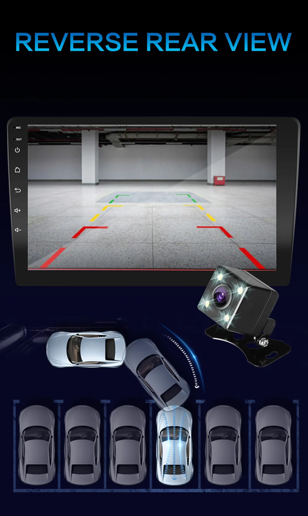 При подключении к резервной камере автомобиля, автомобильный стереомонитор автоматически включит детали заднего вида и поможет водителю безопасно парковаться