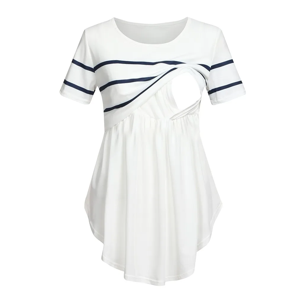 Женская полосатая блузка с коротким рукавом, Одежда для беременных