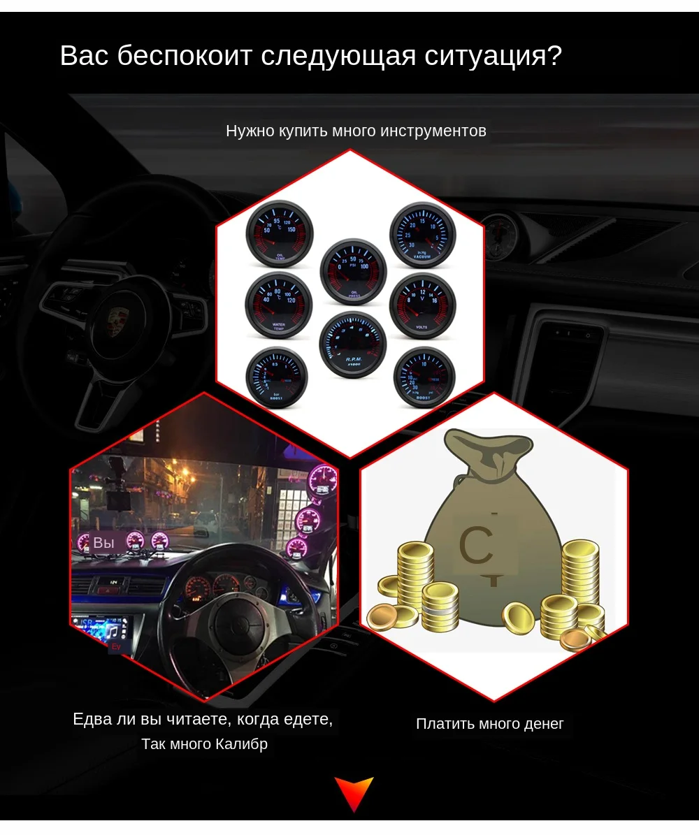 Описание продукта: Размер: 5 дюймов Применимые модели: 12 в бензиновые транспортные средства (4.6.8 цилиндр) Считывание тахометра: 0-11000 об/мин Функция предупреждения тахометра: можно установить Температура воды: 40-120 градусов цельсия Температура масла: 50-150 градусов цельсия Пресс для масла: 0-7 бар