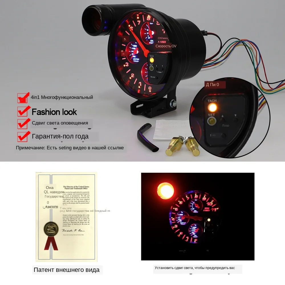 5 "4 в 1 Автомобильный Тахометр Rpm метр гоночный автомобиль Датчик температуры воды датчик температуры масла Датчик давления масла с сдвигом света