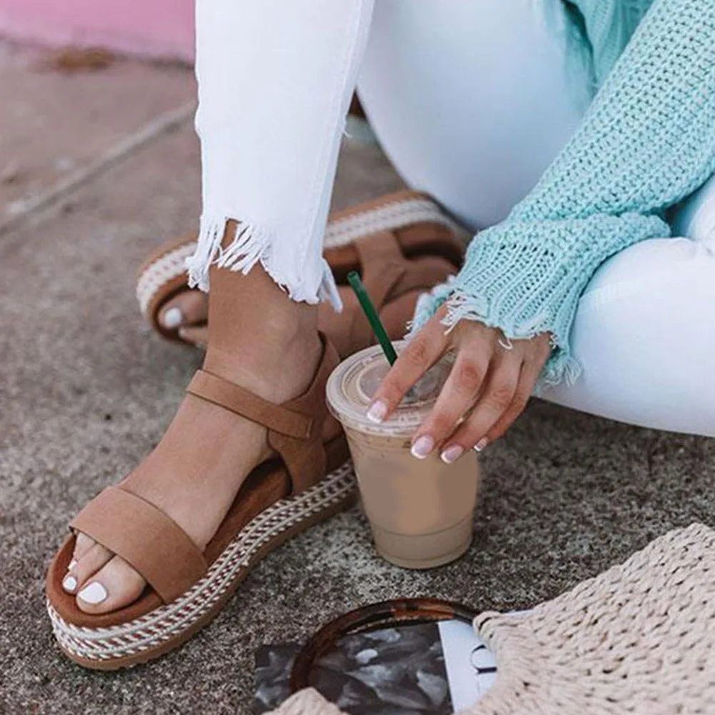 Женские босоножки на платформе; пляжные сандалии на толстой подошве с открытым носком; обувь на плоской подошве с ремешком