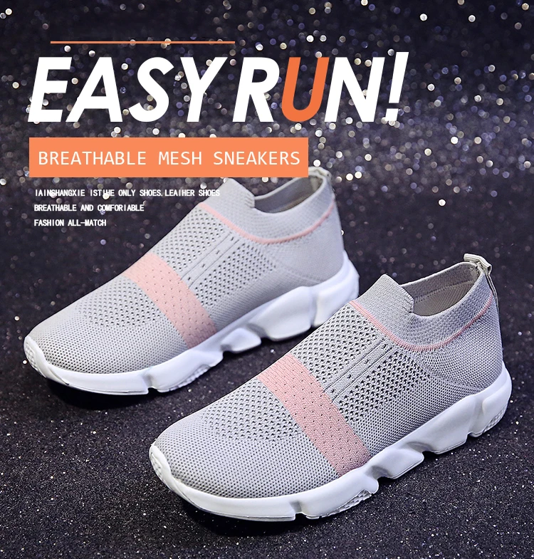 Женские кроссовки для бега, дышащие кроссовки, женские носки, женские ботинки-лоферы, легкая атлетика, женские кроссовки, basket femme, 2019 Женские кроссовки для бега, спортивные носки, женские кроссовки без шнуровки, спортивная обувь на плоской подошве, дышащие сетчатые женские кроссовки, большие размеры 7/2