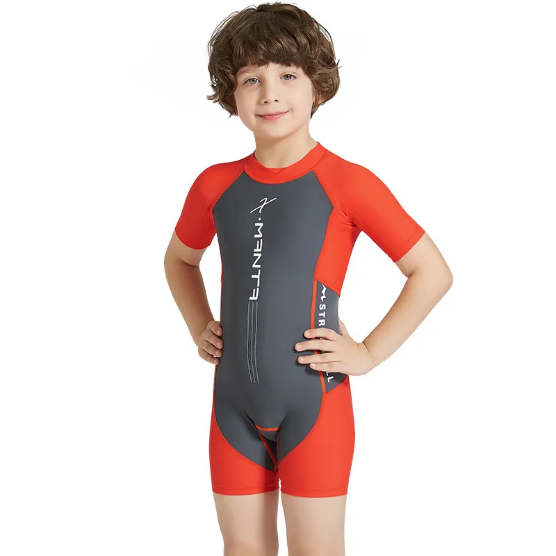 Детский купальник с защитой от солнца с короткими рукавами для мальчиков и девочек, сиамский купальный костюм купальник