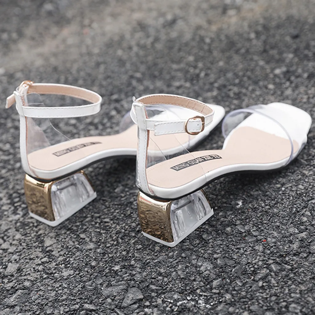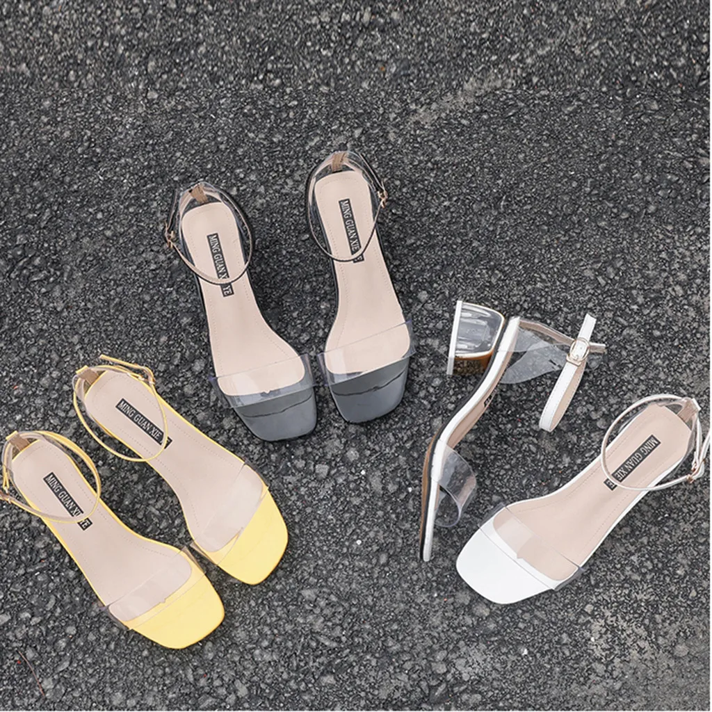 Новинка; модные женские летние сандалии из пвх на среднем квадратном каблуке; обувь для вечеринок с круглым носком