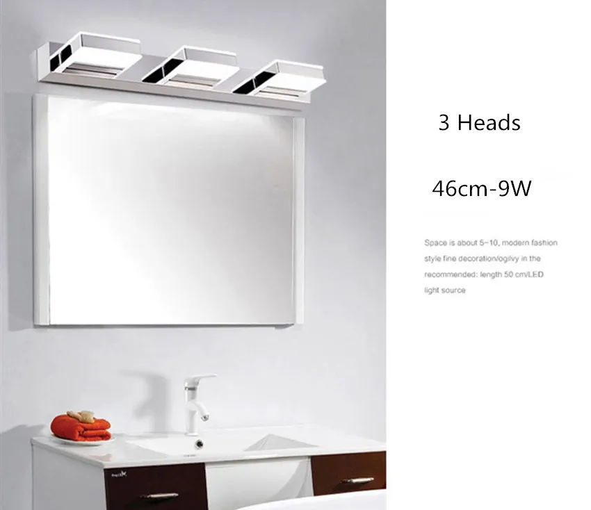 Название: настенный светильник с зеркалом для ванной комнаты Длина: на высоком каблуке 12 см, 30 см, 46 см, 58 см Материал: нержавеющая сталь, акрил Светодиодный: SMD5730 Напряжение: 85-265 в Мощность: 3 Вт, 6 Вт, 9 Вт, 12 Вт Светильник: теплый белый, холодный белый