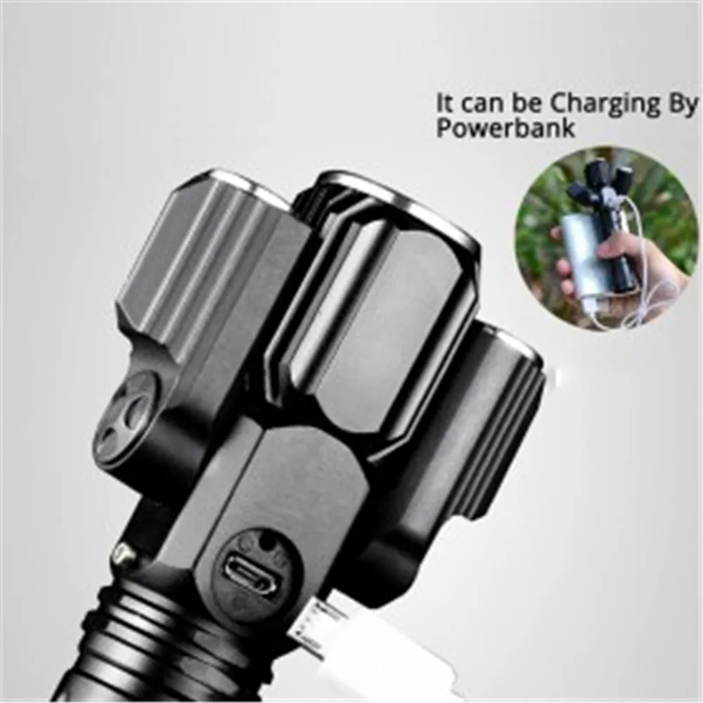 Многофункциональный светодиодный фонарь с тремя головками, перезаряжаемая лампа для наружного освещения