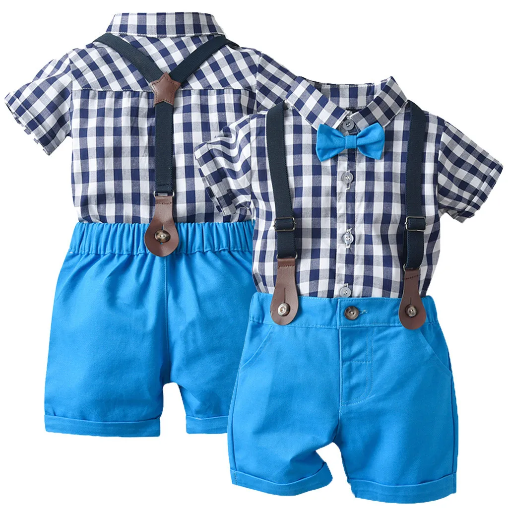Клетчатая футболка с галстуком-бабочкой для маленьких мальчиков топы + шорты, комбинезоны