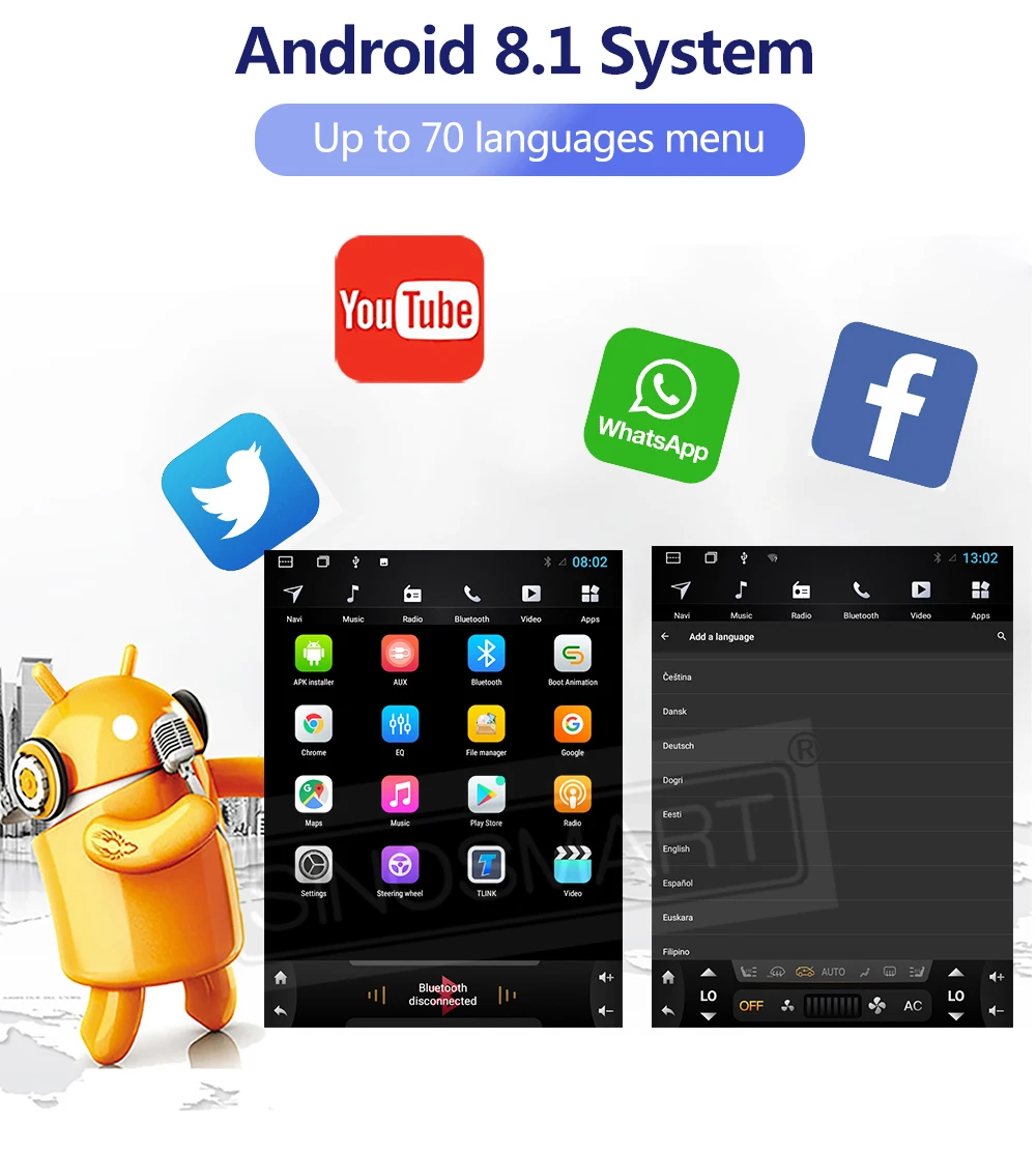 Встроенный WIFI/4G сеть, GPS, радио с RDS, поддержка кнопок управления рулем, Bluetooth для телефонных звонков/музыки и Bluetooth OBD, 1080P видео воспроизведения, зеркальная связь с телефоном. Загрузите и установите приложение, которое вам нравится.
