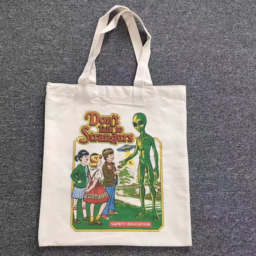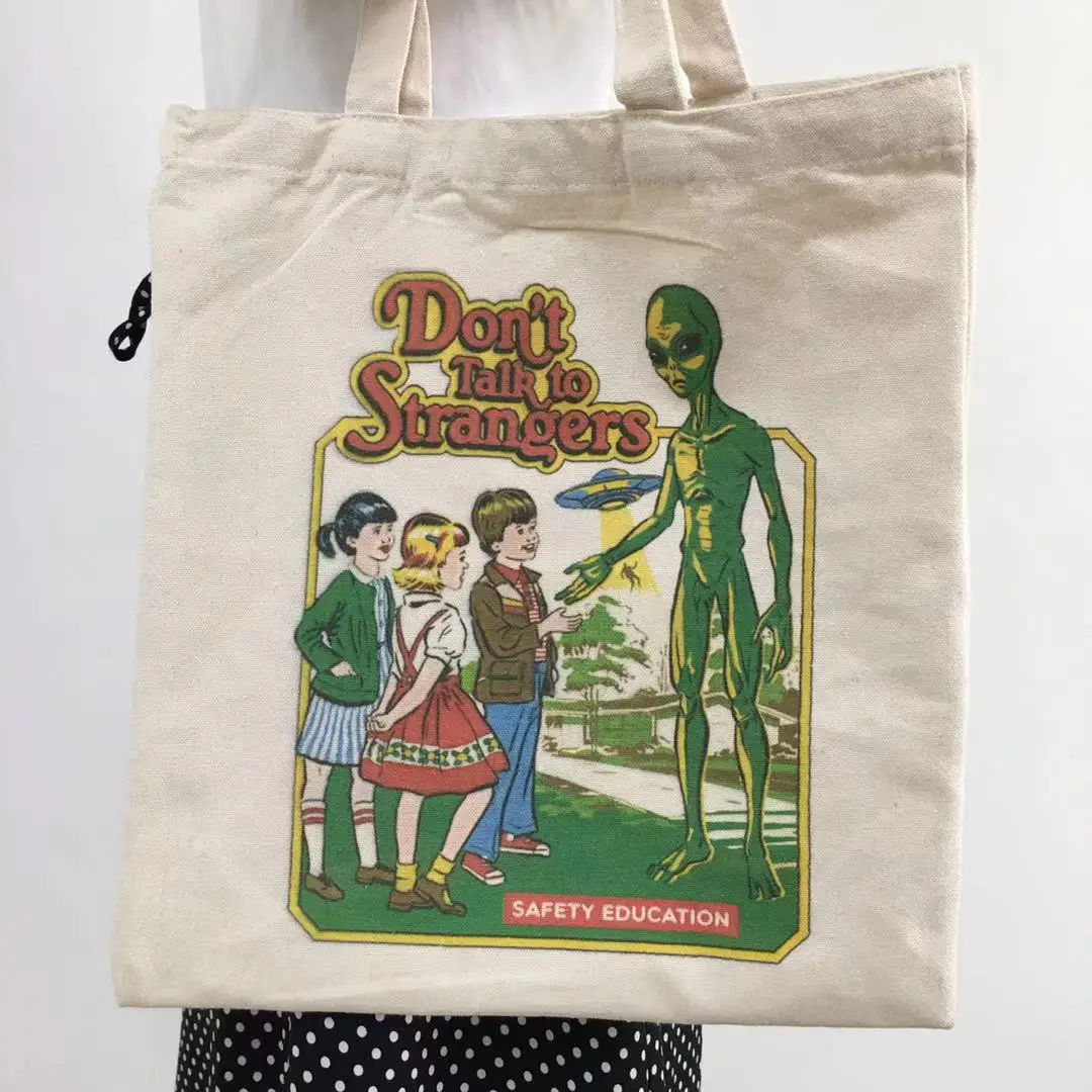 Большая вместительная Холщовая Сумка-тоут Don't Talk To Strangers, Женская винтажная сумка через плечо с буквенным принтом Harajuku, веселая летняя сумка Ulzzang