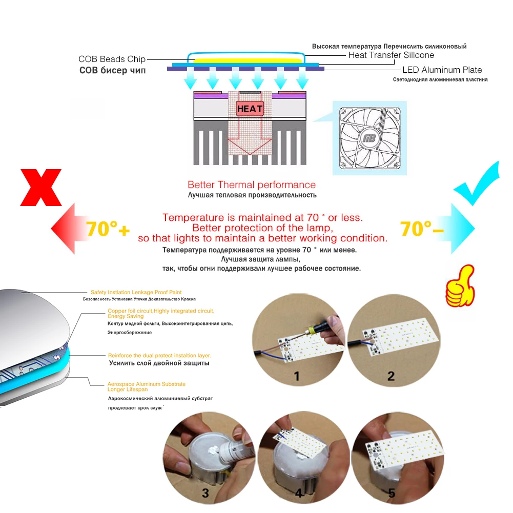 Интегрированная световая доска Wroking< 50 градусов Цельсия Интегрированная световая панель <10 часов в день Задняя панель должна быть покрыта термопастой Плата должна быть в тесном контакте с теплоотводом Пожалуйста, свяжитесь с нами по любым вопросам