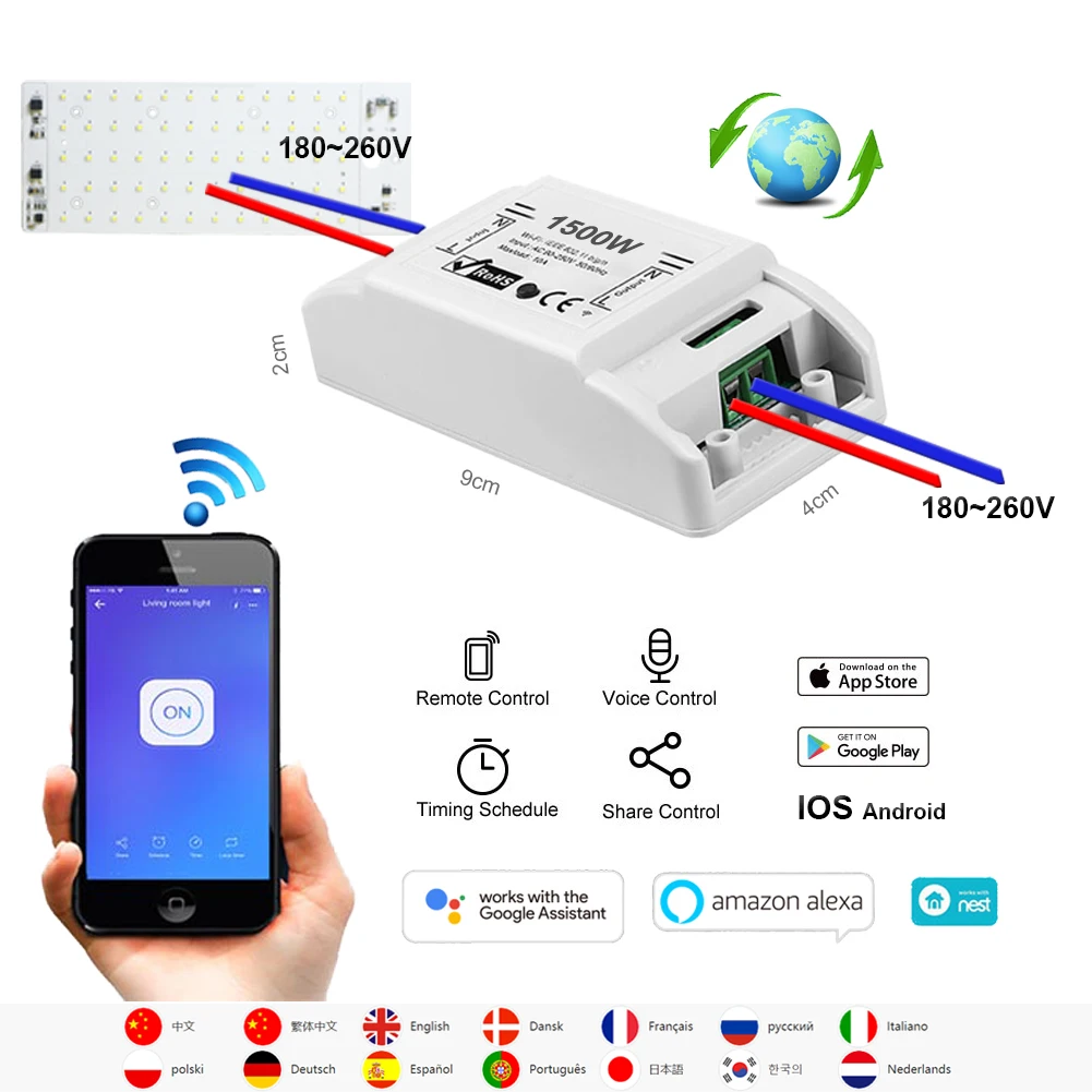 > SJLA Smart APP Wifi переключатель; > Поддерживает сеть WiFi; > Бесплатные IOS и Android mobile; > Управляйте каждой бандой отдельно; > Управляйте своим умным домом вместе с семьей; > Поддерживает Статус устройства в режиме реального времени, предоставленный в приложении; > Поддерживает включение/выключение электрических устройств из любого места; > Таймеры по расписанию/обратному отсчету для включения/выключения в указанное время; > Поддерживает 8 таймеров по расписанию/обратному отсчету/циклу для каждого устройства; > Поддерживает множество смарт-переключателей WiFi на одном смартфоне (вам нужно только добавить устройства в приложение); > Работает с голосовой Amazon Alexa,Echo, Echo Dot, Amazon Tap; > Работает с голосовым Google Assistan/Home/Nest; > Работает с IFTTT. > И т. д...
