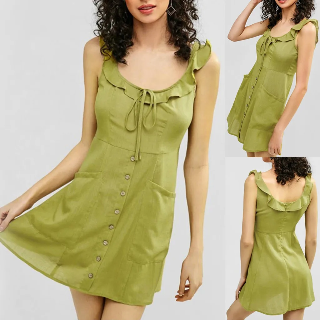 Модный женский сексуальный о-вырез с оборками твердый бандаж мини платье-футляр