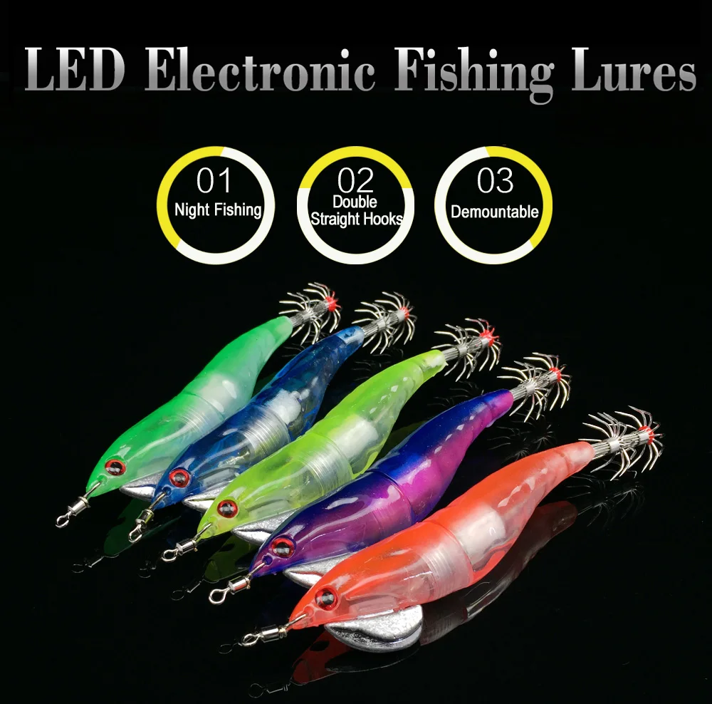 Параметры: 5 цветов: красный, зеленый, синий, желтый, фиолетовый, розовый Длина: 13 см Вес: 19 г Особенности: Мигающий/мигающие огни (Когда поместите его в воду, он будет мигать светильник, как на картинке.) Приманка представляет самые передовые технологии и дизайн, форма Похоже на настоящие креветки, так что вы можете ловить рыбу больше. Это пластиковая конструкция, химические металлические заточенные крючки, они прочные и Экологичные.