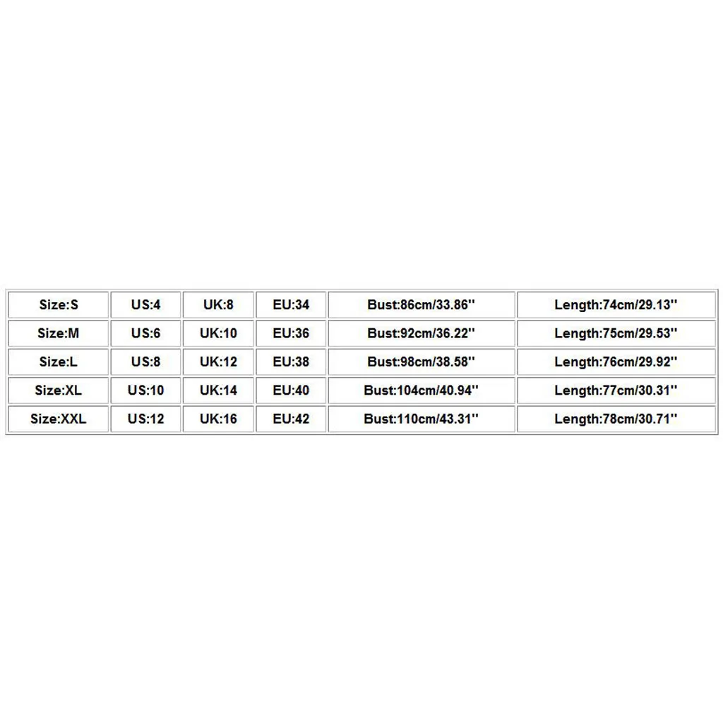 Пожалуйста, сравните размеры с вашими перед покупкой! Цвета могут немного отличаться в зависимости от настроек компьютера и монитора Пожалуйста, позвольте 1-3 см отличаться из-за ручного измерения, спасибо (все измерения в см и пожалуйста, обратите внимание на 1 см = 0,39 дюйма) Размеры таблицей: Размер Свяжитесь с нами Великобритания ЕС Обхват груди Длина S 4 8 34 86 см/33,86'' 86 см/33,86'' М 6 10 36 92 см/36,22'' 87 см/34,25'' L 8 12 38 98 см/38,58'' 88 см/34,65'' XL 10 14 40 104 см/40,94'' 89 см/35,04'' XXL 12 16 42 110 см/43,31'' 90 см/35,43''