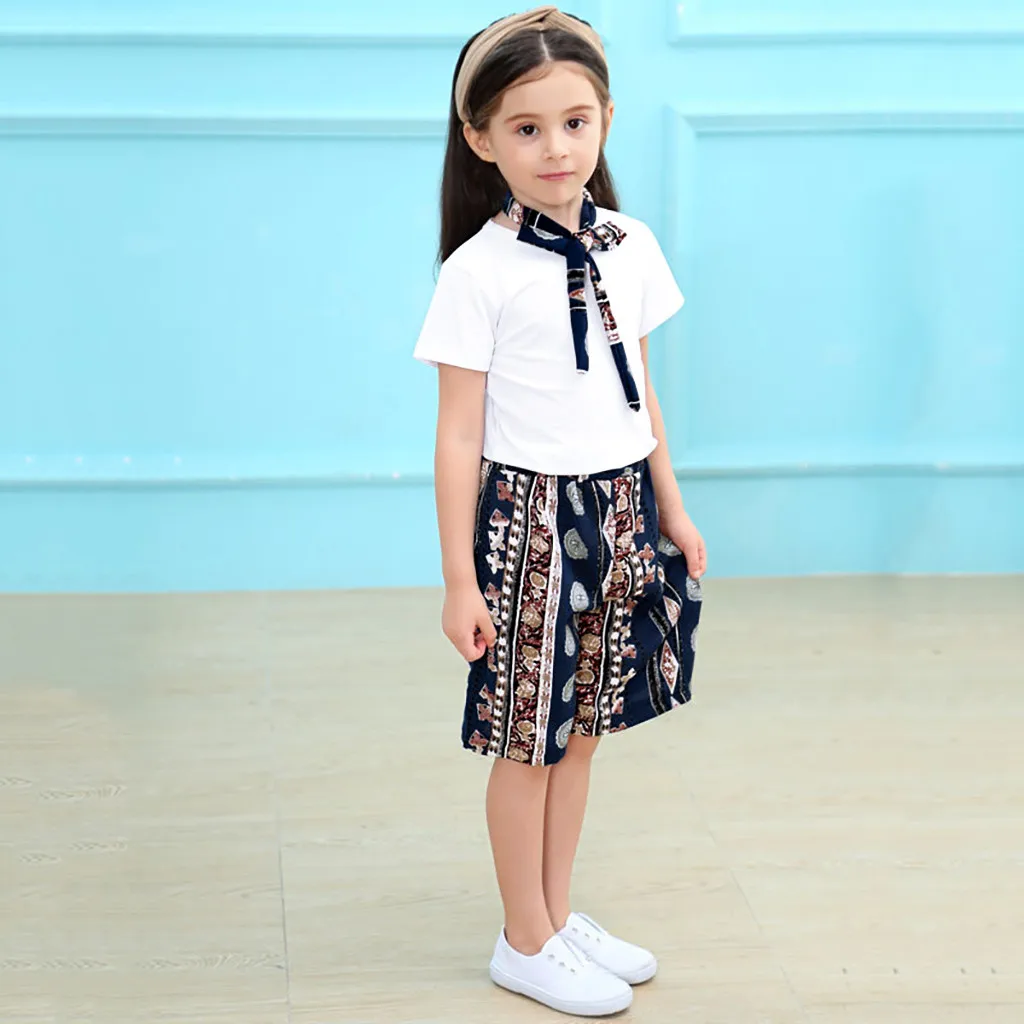 Однотонная футболка с короткими рукавами для маленьких девочек топы + шорты с геометрическим принтом