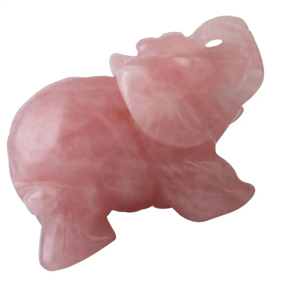 Elephant Pink Crystal Artware Decoration Animal Pocket Stone Statue Figurine Auspicious Crystal Jade Ornament Handicraft #BO