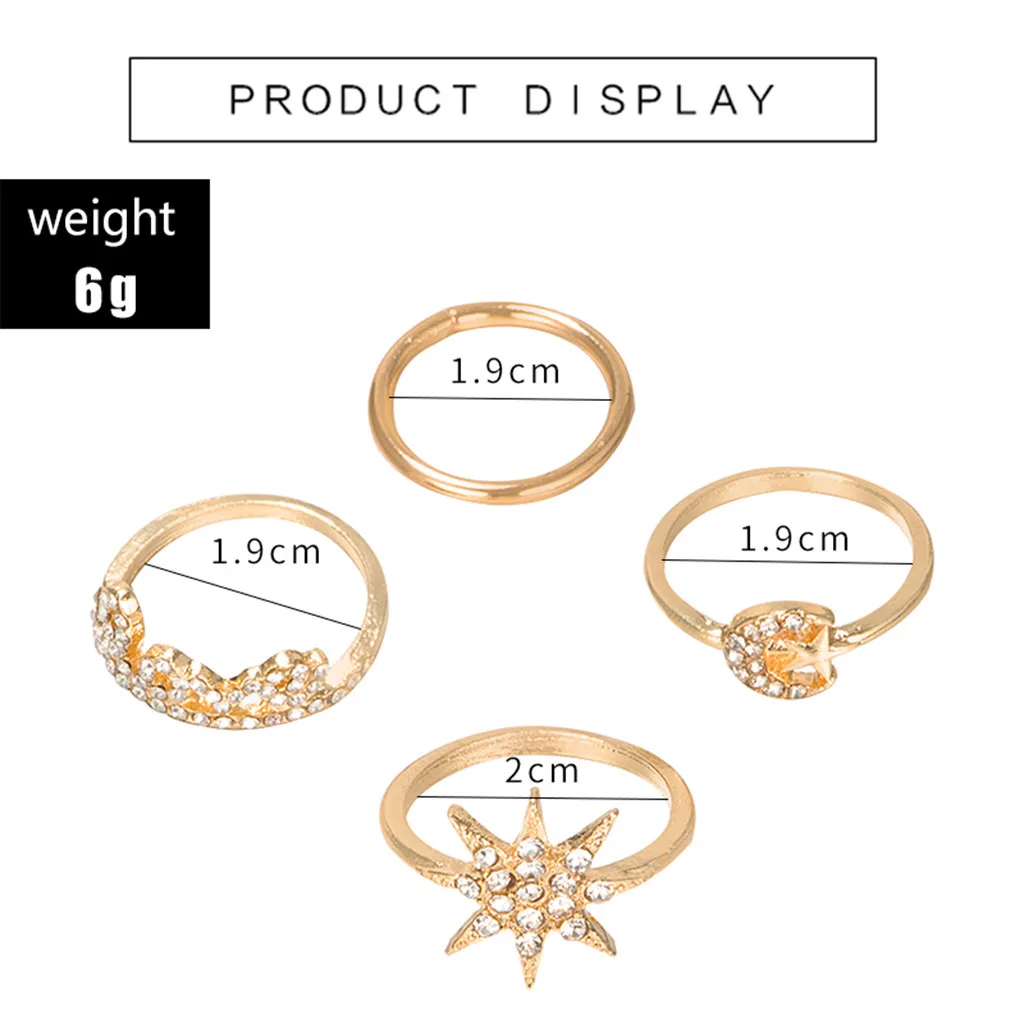 Женское кольцо в стиле ретро со звездами и Луной с английскими буквами, набор из 4 ювелирных украшений