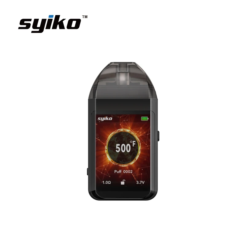 Бренд: Syiko Модель: SE Размер: 89x45x15 мм Емкость аккумулятора: встроенная 650 мАч Емкость стручка: 2 мл Диапазон мощности: 5-12 Вт Выходное напряжение: 3,7 V-4,6 V Сопротивление катушки: 1.5ohm Дисплей: 2,0 цветной экран Зарядный ток никель-металл-1000 мА-ч Вес 150 г