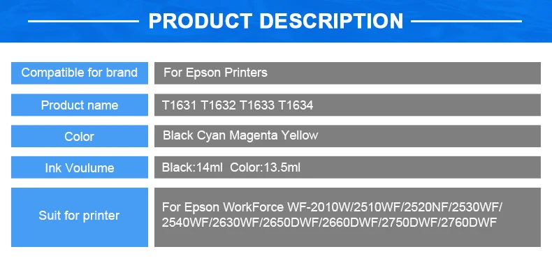 T1631 T1621 16 16XL совместимый чернильный картридж для Epson WorkForce WF 2010