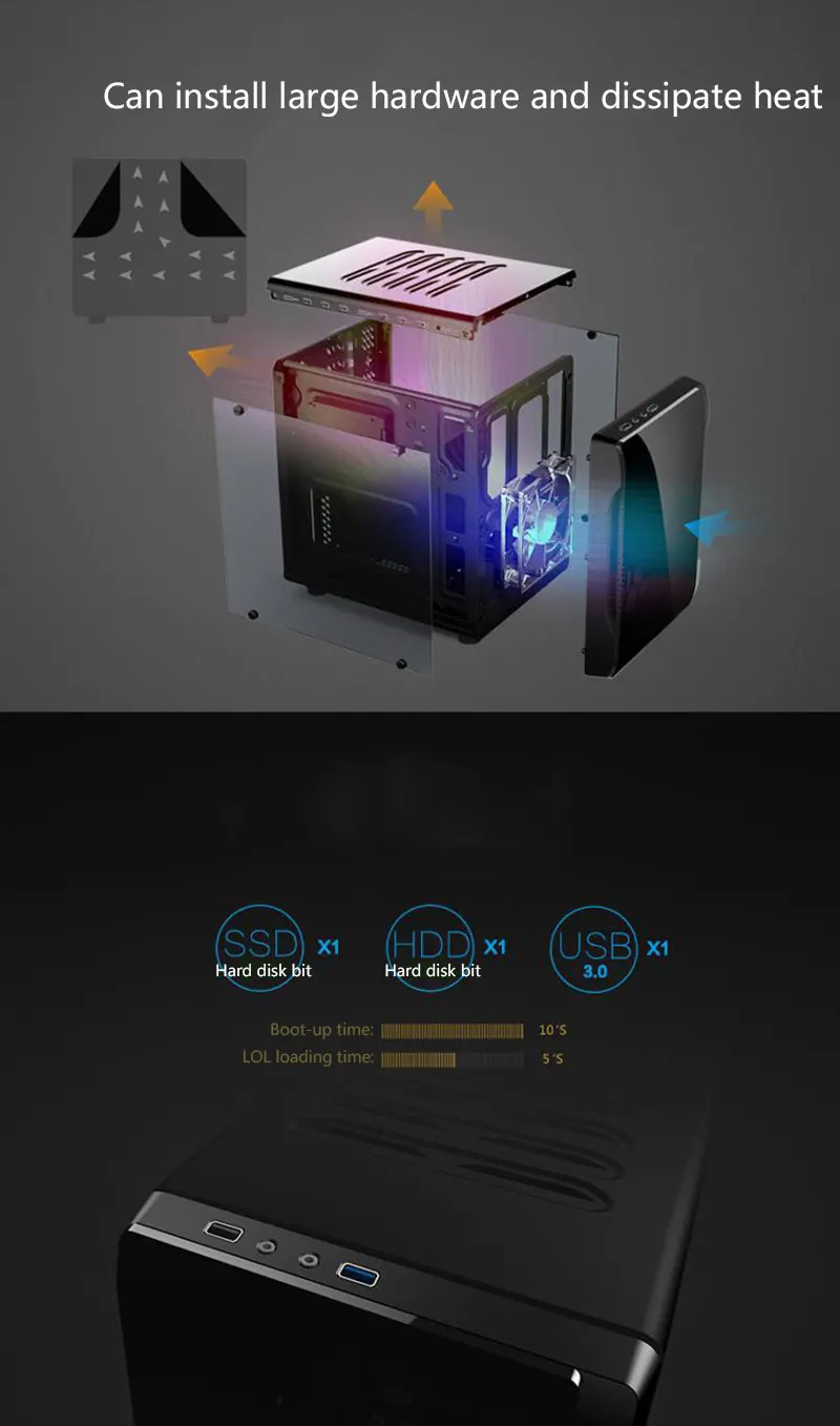 Описание: Тип корпуса: мини прозрачный защитный чехол (ошибка) с тремя сторонами Расположение жесткого диска: HDD * 1/SSD * 1 Материал корпуса: SGCC (оцинкованный стальной лист горячего погружения) Тепловая производительность: спереди 12 см 15 светодиодный вентилятор акулы Тип Шасси: Мини трехстороннее прозрачное шасси Структура шасси: Micro-ATX, Mini-ITX Дизайн источника питания: более низкий источник питания Применимая Материнская плата: небольшие и средние платы до 250*255 мм Расширенный слотов для карт: 4 Размер продукта: 285x285x225 мм Фронтальный Внешний вид: USB3.0 Интерфейс x1, USB2.0 Интерфейс x1, интерфейс гарнитуры x1, соединение микрофона x1 Материал шасси: SGCC (оцинкованный стальной лист горячего погружения) Толщина пластины: 0,5 мм Производительность рассеивания тепла: фронтальный 12 см 15 Светодиодный ослепительный вентилятор акулы (стандартный, с 12 см светоизлучающим большим вентилятором) Основание 8 см теплоотвод процессора эксклюзивное положение вентилятора (опционально) Особенности: -0 сотовая структура, от экологичного дизайна, простая естественная. -Большая область применения стеклянной панели, передняя панель, обе стороны плиты равномерный Полный стеклянный акриловый материал, аппаратный световой эффект взгляд. -Поддержка m-atx и mini-itx маленькая и средняя материнская плата, решить мини-кейс не поддерживает проблему материнской платы m-atx. -Основная конкурентоспособная видеокарта легкая поддержка (менее 24 см), рынок ATX Стандартный источник питания или длинный с источником питания. -Простой дизайн воздуховода, большой объем воздуха перед вентилятором света, от верхней и задней вытяжной горячий воздух. -Твердотельный жесткий диск SSD для игры в игры, как базовая конфигурация хоста плеера esports, более быстрый отклик. -Специальная структура облегчает установку высокопроизводительного оборудования за несколько секунд. -Модульная установка, компактное пространство fuselage в ширину, шасси внутренняя циркуляция воздуха быстрее, более способствует рассеиванию тепла. -Поддержка до 80 мм cpu радиатора, поддержка 240 мм длинной графической карты. -Разумная структура, аппаратная сильная совместимость. Внутренняя структура материнской платы, мощность, жесткий диск, чтобы отличить один на один, разумное и организованное разделение пространства, совместимо с 240 мм длинной графической картой. -Система рассеивания тепла циркуляции Cloverleaf, каждая сторона корпуса имеет дизайн тепловыделения, циркуляционный теплоотвод cloverleaf, тепловыделение тепла без мертвых углов. -Аппаратная Установка модуля, область материнской платы, область электропитания и Отдел аппаратной структуры жесткого диска, что способствует установке различных частей, прост в линейке. Посылка включает в себя: 1 х мини прозрачный защитный чехол (ошибка)