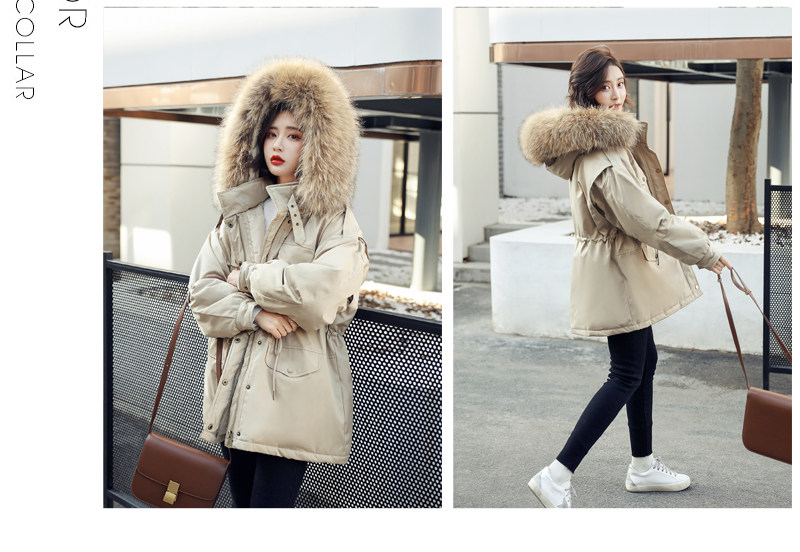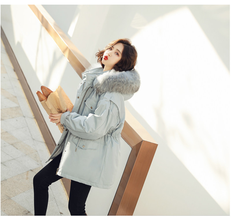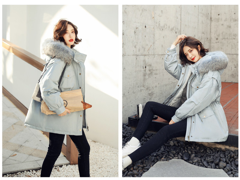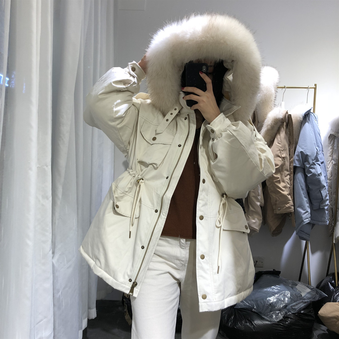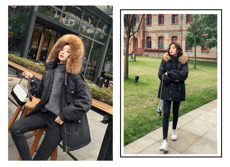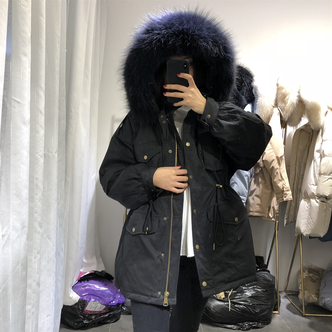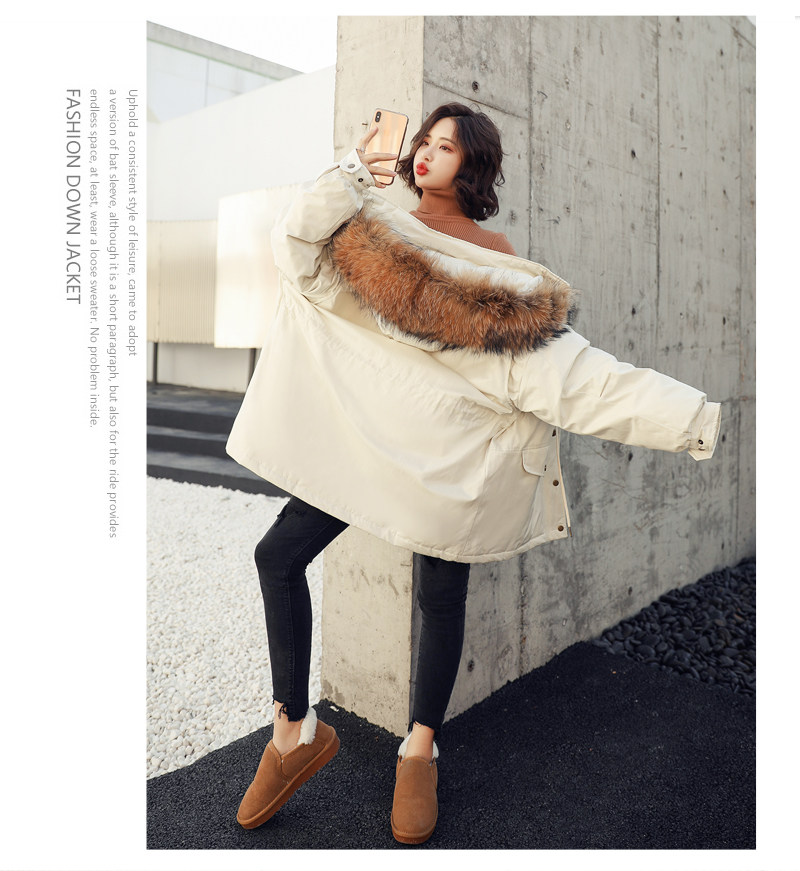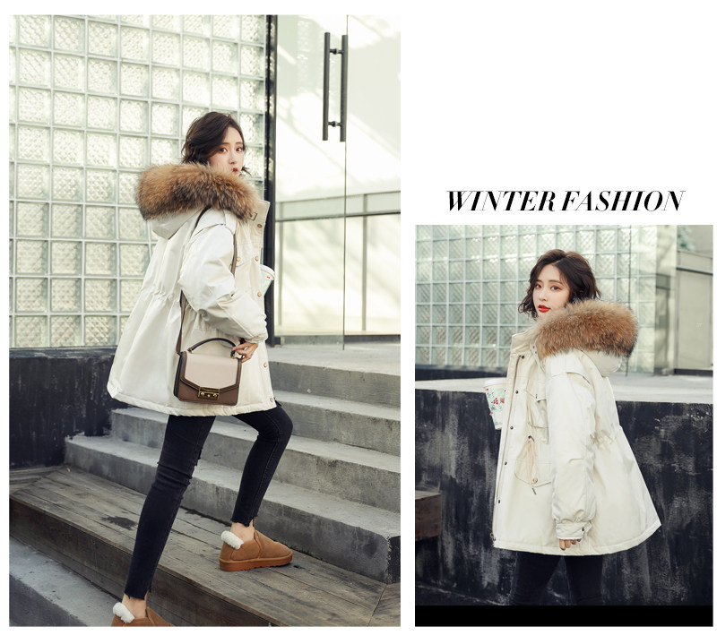 Материал:Воротник из натурального меха енота+Внутренняя подкладка из белого утиного пуха= Роскошные утепленная парка