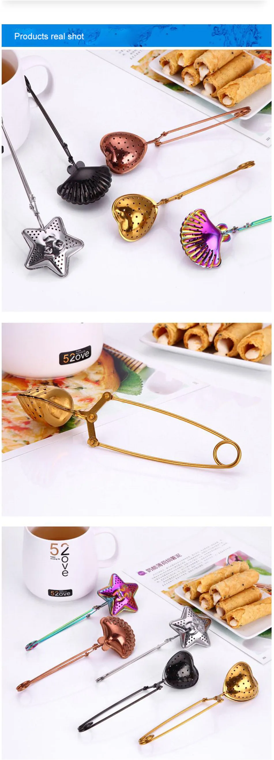 Шикарный чайный заварочный фильтр из нержавеющей стали Креативный дизайн чайный зажим чистая Золотая оболочка Сердце Звезда галоген