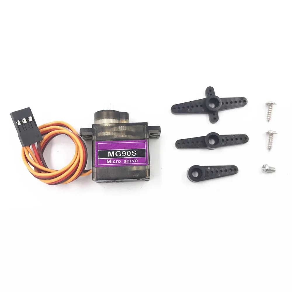 -Светильник Вес Уменьшенного использования пластин Шум -Длина провода соединителя 250 мм Описание продукции: Для: мини-автомобиль/мини-корабль/вертолет и самолет Модель: MG90S SG90 обновленная версия Вес: 12г Скорость: 4,8 V & 0.10 сек/60 градусов; 6,0 V & 0.09sec/60 градусов Крутящий момент: 4,8 V & 1,6 кг-см; 6,0 V & 1,8 кг-см Напряжение: 4.8V6.0V Длина провода соединителя 250 мм Размер: 22,6 мм x 12,1 мм x 22,5 мм Ширина мертвой ленты: 5 usec Характеристики интерфейса: JR / FP General Аксессуары: мульти-рычаг, крепежные винты Область применения: вертолеты KT, развевающиеся, скользящие, маленькие роботы и другие модели Рекомендуемая модель: мини-автомобиль/мини-корабль/вертолет и самолет Отгрузочная ведомость: 1 * MG90S мини микро сервопривод