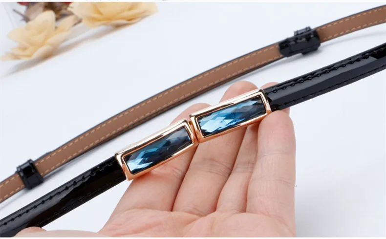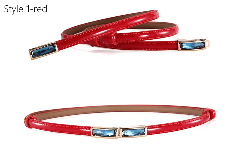Стиль 1 материал: лакированная кожа Стиль 2 Материал: коровья кожа Пряжка: длинные стеклянные стразы с пряжкой; Ширина ремня: 1 см; Длина ремня: около 95 см (37,5 ") подходит для талии 55-92 см (21,7-36,2") Лучшее сочетание: платье, джинсы, шорты.