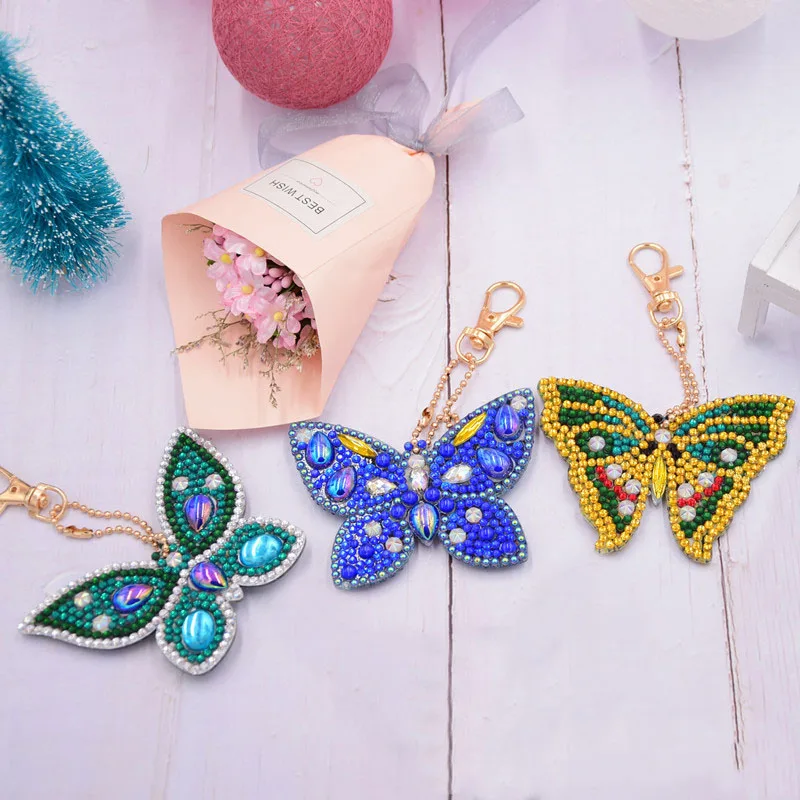 Алмазный брелок с вышивкой мультфильм серии DIY 5D полный двухсторонний дрель«Бабочка» Украшения подарок Алмазная картина брелки