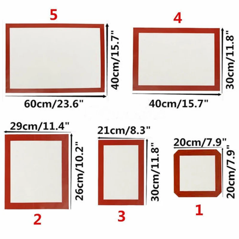 * 5 размеров для вашего выбора, может удовлетворить ваши различные требования к выпечки. (60x40 см/23,6x15,7 "; 40x30 см/15,7x11,8"; 29x26 см/11,4x10,2 "; 30x21 см/11,8" x 8,3 "; 20x20 см/7,9x7,9")