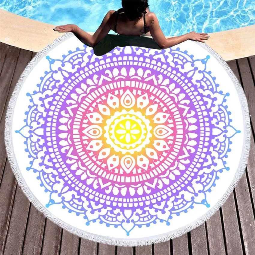 Размер полотенца: круглый 150x150 см Узор полотенца: мандала, цветы, геометрический рисунок Полотенца Материал: микрофибра Вес полотенца: 450-500 г Посылка включает в себя: 1 пляжное полотенце Примечание: 1. Допускается погрешность измерения вручную в 1-2 см. 2. На разных мониторах разные цвета, поэтому цвет может немного отличаться от реального цвета. 3. Из-за большого расстояния доставка, продукт будет немного складной, выглядит не так плоским, как показано на картинке, но не влияет на использование.