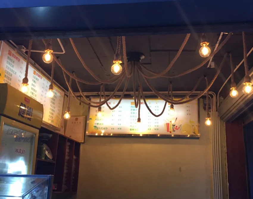 Винтажный промышленный светодиодный подвесной светильник в стиле паука из пеньковой веревки, освещение для дома в скандинавском стиле для офиса, ресторана, кафе