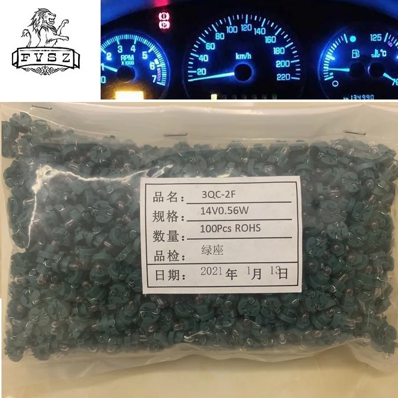 100 шт. T3 12 В 14 в 0,56 Вт 3000 К автомобильные лампы для приборной панели с аудиопередачей, желтый светильник + зеленый
