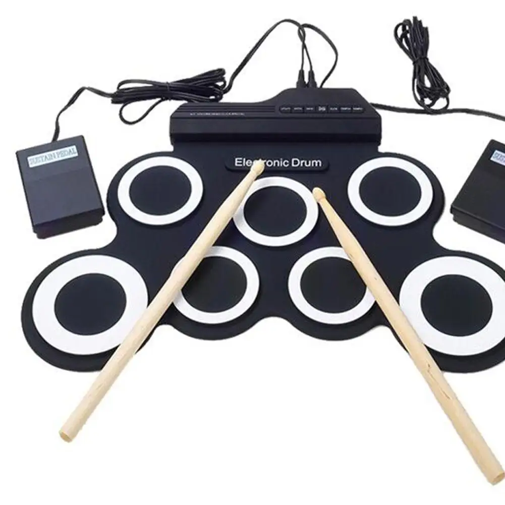 2. С 7 силиконовыми барабанными колодками, включая Tom(3)/Snare/Hi-Hat/аварию/поездку, что обеспечивает отличный звук и имитирует реальный эффект бьющегося;