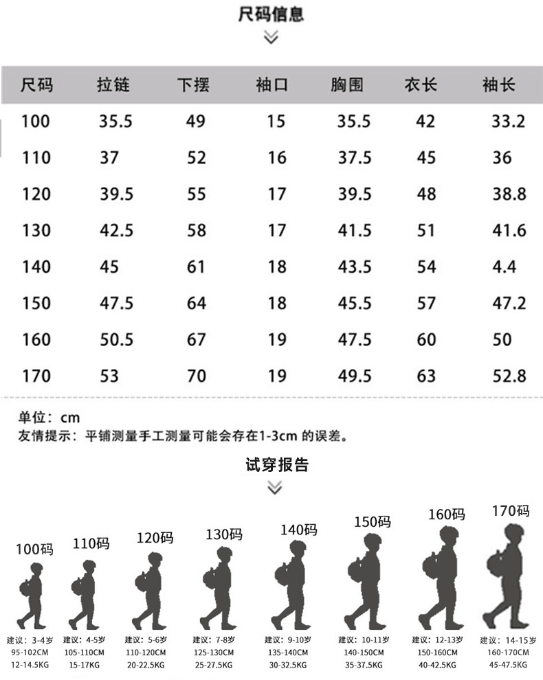 Размер 4T(110): длина одежды: 45 см, обхват груди: 74 см,Рукава: 35 см,Рекомендуемая высота 90-100 см