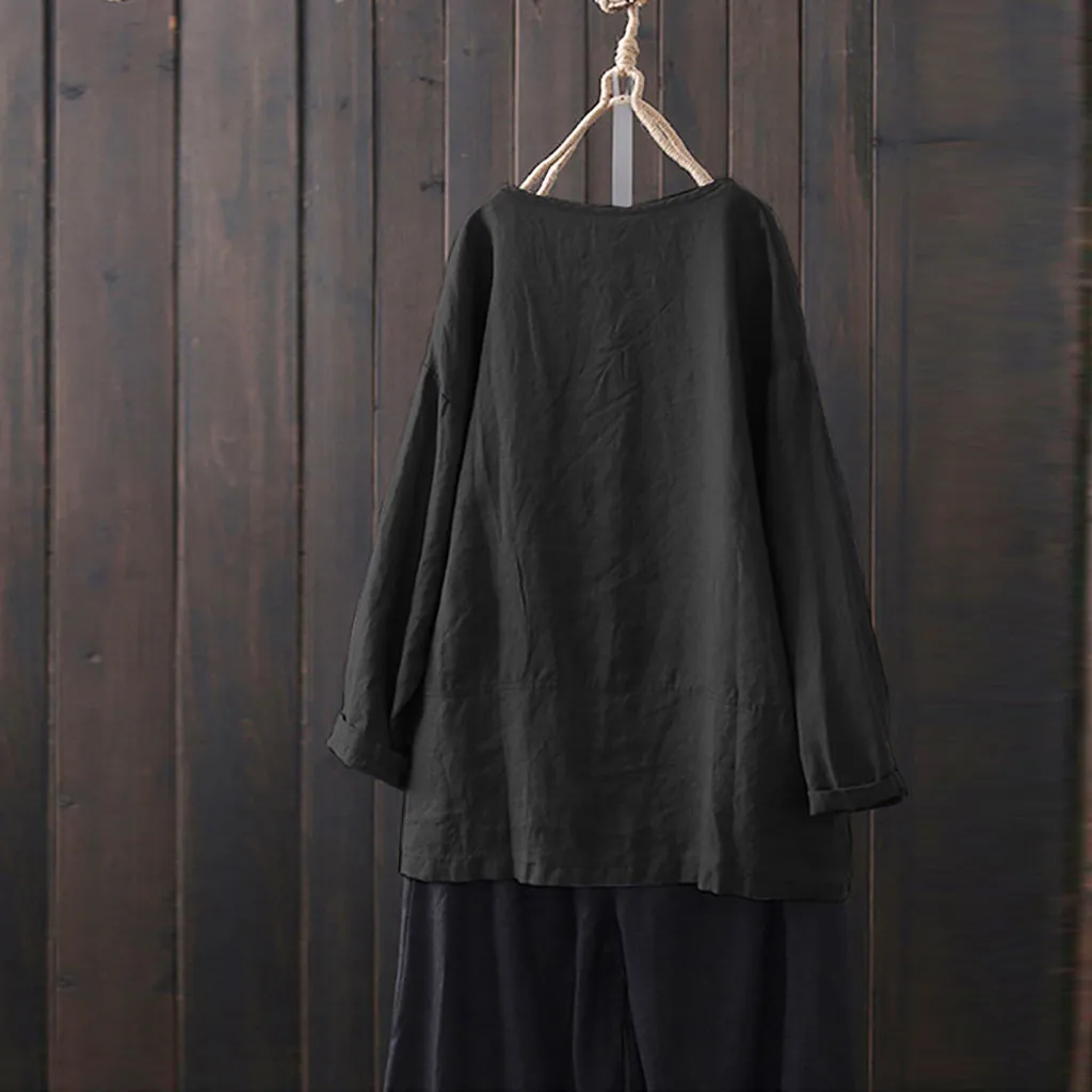 Женская Повседневная Однотонная футболка с длинным рукавом из хлопка и льна большого размера