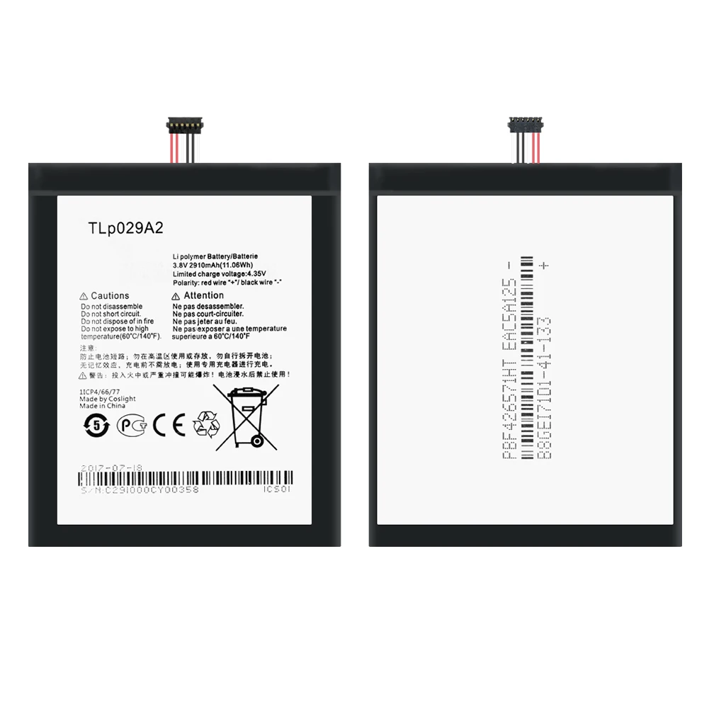 2910 mAh TLp029A2 литий-полимерный аккумулятор для Alcatel One Touch Idol 3 5,5 "I806 6045Y 6045 K 6045F/Pop 3 5,5" OT-5025 5025D Особенности 100% Новинка! Высококачественная 3,8 В 2910 мАч аккумуляторная батарея, безопасная и эффективная. Передовые литий-полимерные технологии, высокая плотность энергии, строгий контроль качества и прочный материал для увеличения срока службы батареи, около 500 циклов зарядки. С большой емкостью 2910 мАч, и вам не нужно часто заряжать телефон. Встроенный интеллектуальный интегрированный микрочип с защитой от перенапряжения, перегрузки по току, переразряда, перезаряда, чрезмерной мощности, перегрева и короткого замыкания. Лучшие сменные батареи, непрерывно питают ваш мобильный телефон, 100% совместимы. Технические характеристики Номер модели: TLp029A2/TLp029AJ/TLP029A2-S/TLp029A1 Тип: литий-ионный полимерный аккумулятор Емкость: 2910 мАч Номинальное напряжение: 3,8 В Ограниченное Напряжение зарядки: 4,35 в Перезаряжаемый: Да Жизненный цикл батареи: ≥ 500 циклов Рабочая температура:-20 °C ~ 60 °C Сертификация качества: CE, FC Вес: около 38 г/1,34 унций Размер (Д * Ш * В): около 77.1x63.2x3. 3 мм/3,04x2,49x0,13" Совместим с: Alcatel One Touch Idol 3 5,5 "I806 6045Y 6045 K 6045F/Pop 3 5,5" OT-5025 5025D/Pixi 3 5,5 "/Pixi 3 5,5" 3G Внимание 1. Пожалуйста, допускайте небольшие отклонения в размере из-за измерения человеком. 2. Не пытайтесь разобрать, ударить, сжать или поставить в огонь. 3. В случае значительного расширения, Не продолжайте использовать. 4. Не подвергать воздействию высокой температуры (тепло выше 60 ℃). 5. Не используйте аккумулятор после погружения. В комплект входит Аккумулятор для телефона-1 шт.
