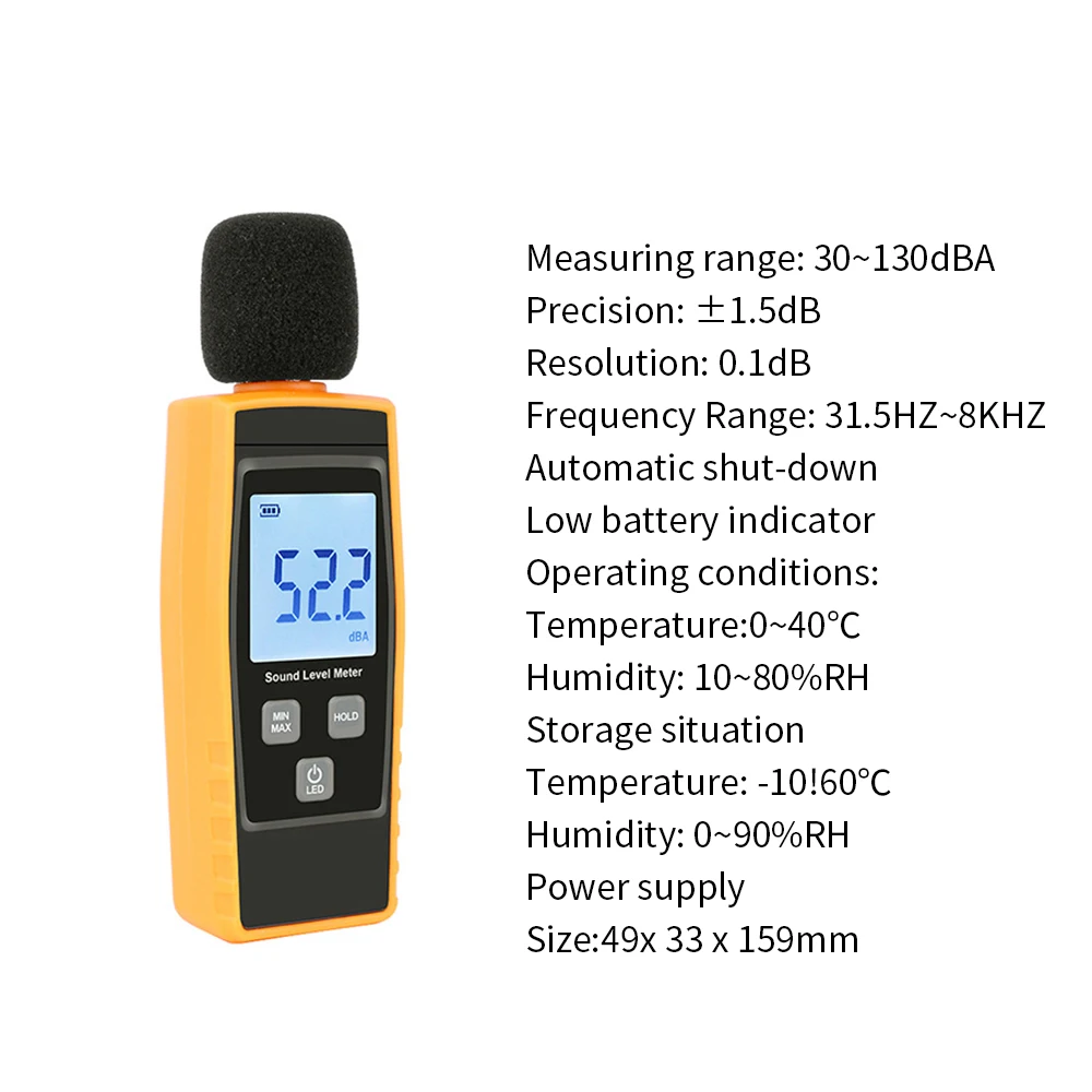 1. 【Полезный инструмент】: идеально подходит для тестирования жалоб на шум, записи музыки, промышленных настроек, офисных настроек, речевой терапии и многого другого. 2. 【Широкий диапазон и точные измерения 】: он измеряет диапазон от 30 - 130 дБА с частотным диапазоном от 31,5 до 8 кГц. Высокая точность с +/-1,5 дБ. Разрешение: 0.1дб, частота дискретизации 2/с 3. 【Держать, Макс и MIN】: включая все полезные функции, такие как фиксация данных, Макс записанные чтения и мин записанные чтения, а также автоматическим включением/выключением питания, Предупреждение mark диапазон измерений 4. 【Жк-дисплей с подсветкой 】: ЖК-дисплей с подсветкой для четкого чтения, удобный в использовании в ночное время. Размер: 4,9X3,3x15,9 см, вес: 220 г 5.【 100% гарантия возврата-мы гарантируем один год гарантии, вы можете быть уверены в покупке. Если вы не полностью удовлетворены нашей продукцией, мы предоставим вам полный возврат средств.