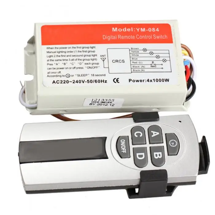 Нажмите любую из кнопок A, B, C D на пульте дистанционного управления переключателем, соответствующий светильник или розетка приведен в действие, другой пресс отключит его. Каждый канал может использоваться индивидуально.