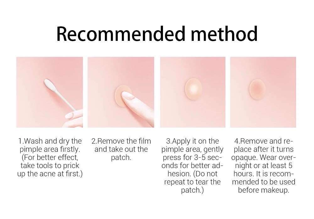 3. Нанесите его на область прыщей, аккуратно нажмите в течение 3-5 секунд для лучшей адгезии. (Не повторяйте, чтобы оторвать пластырь.)