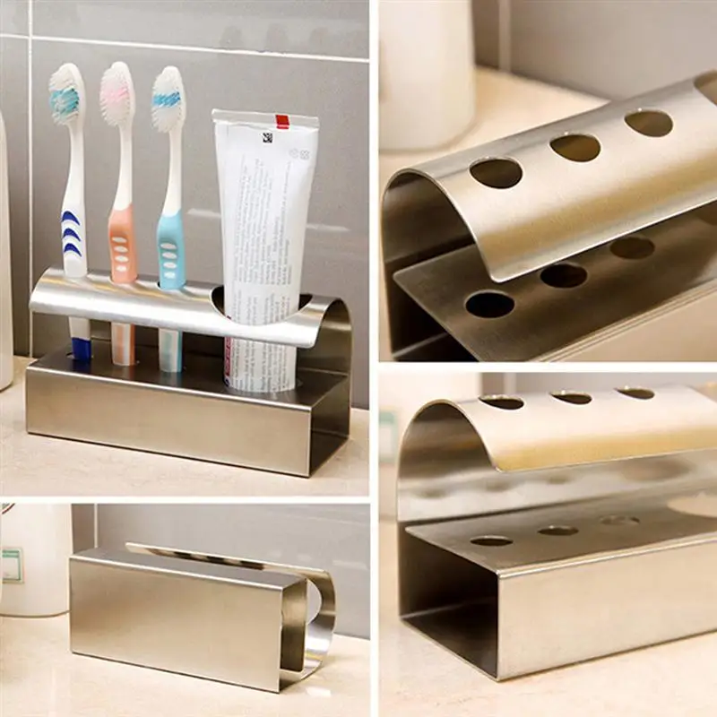 Изделие представляет собой простую и практичную настольную зубную щетку для ванной комнаты, которая в основном изготовлена из прочных 304 материалов из нержавеющей стали для практичного использования. С 3 отверстиями для зубной щетки и 1 отверстием для зубной пасты компактный дизайн и простота в использовании, это действительно замечательный гаджет для ванной комнаты на выбор.